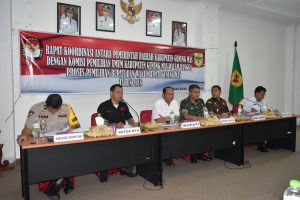 Gunung Mas – Komisi Pemilihan Umum Bersama Pemerintah Daerah Kabupaten Gunung Mas menggelar rapat koordinasi Alur Pemutahiran data pemilih dan penetapan DPS dalam pemilihan Bupati dan Wakil Bupati Gunung Mas tahun 2018 Tanggal 27 Juni 2018 yang akan datang. Kegiatan dimaksud diselenggarakan di ruang rapat lantai satu kantor Bupati Gunung Mas Rabu, (21/03/2018) turut hadir mendampingi Bupati Gunung Mas Drs. Arton S. Dohong, Ketua KPU Stepenson, S.Ag.,MH, yang mewakili Kapolres Gunung Mas Kabag OPS Kompol Theo, Pabung PKL/1016 Mayor Infanteri Catur Prasetio Nugroho, yang mewakili Kejari Kasi Pidsus Indra, SH, Komisioner KPU Gumas Yepta H. Jinal, Elfrit Tumon, Sukjani, timses Pasalon, Camat se-Kabupaten Gunung Mas serta undangan lainya.